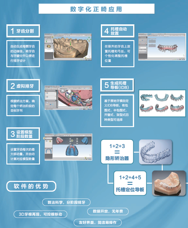 數(shù)字化隱形矯治技術(shù)是目前較受醫(yī)生和患者關(guān)注和歡迎的矯正技術(shù),為了讓臨床醫(yī)生能快速掌握數(shù)字化隱形矯正技術(shù),并能在門(mén)診輕松實(shí)現(xiàn)隱形正畸的整套治療,北京云尚智造聯(lián)合德國(guó)3D打印廠商EnvisionTEC針對(duì)臨床醫(yī)生推出數(shù)字化隱形矯正套裝,套裝包含:口腔掃描儀、?正畸設(shè)計(jì)軟件、?3D打印機(jī)、?壓模機(jī)及相應(yīng)的培訓(xùn)及服務(wù)。
