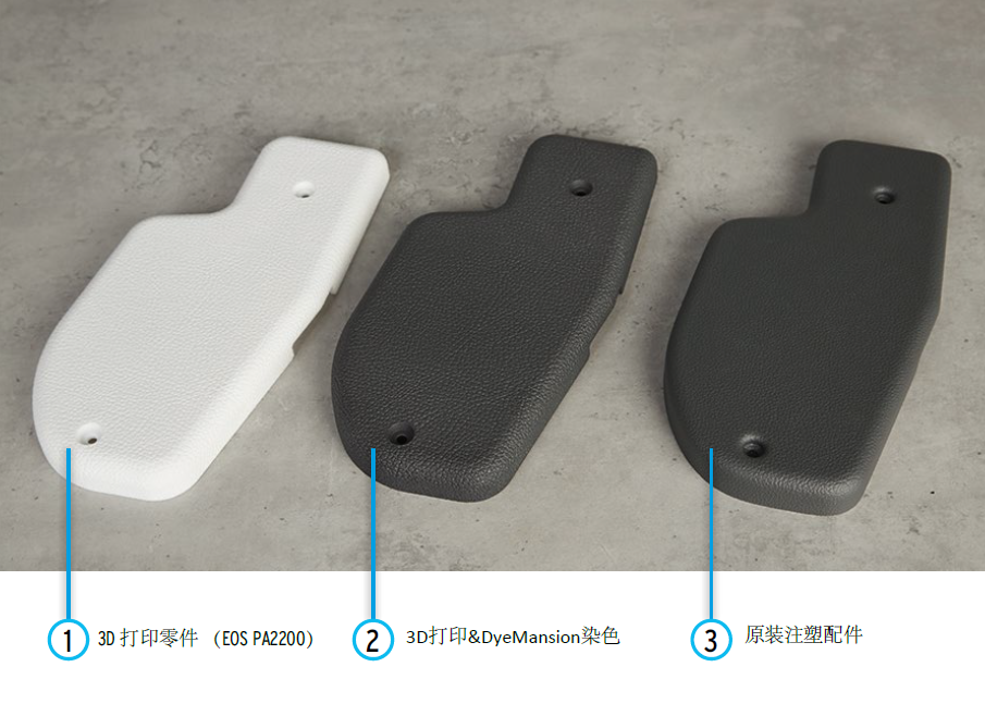 戴姆勒是汽車行業(yè)最早應用增材制造的公司之一。在戴姆勒客車的3D打印中心,2016年啟動了第一個3D打印備件項目。得益于3D打印技術成熟穩(wěn)定的工藝以及DyeMansion的染色技術,該公司現(xiàn)在可以生產表面質量可與注塑工藝媲美的3D打印備件。