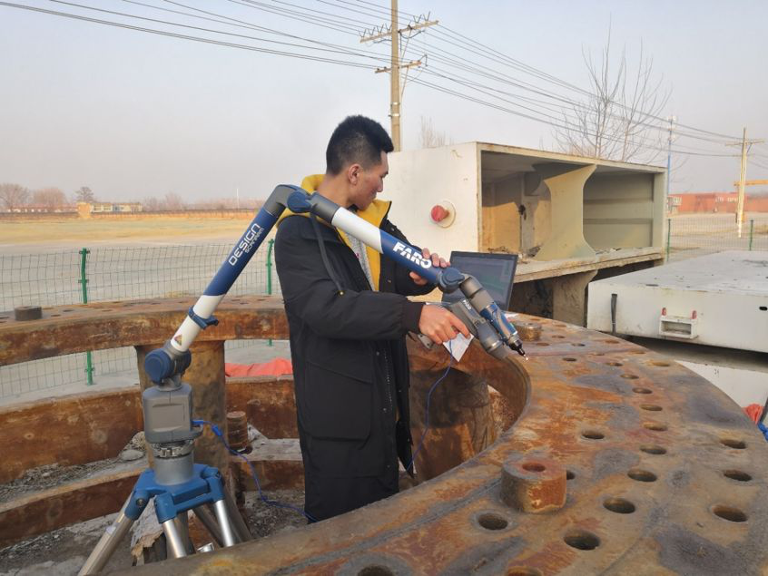 刀盤法蘭的安裝是一個特殊的安裝環(huán)境——地下,正是由于此工作需要在地下進行,因此絕對不允許存在返工的情況發(fā)生。本次的設計、制作、加工均需要非常高的精度,必須一次成功。我們利用高精度的激光掃描技術對該零件進行掃描后精確出圖。