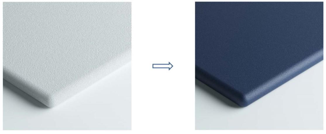 染料在水浴環(huán)境中借助化學(xué)反應(yīng)滲透到塑料內(nèi)部。在熱量和壓力的作用下,DyeMansion染色工藝可保證染料均衡滲透,滲透深度可達(dá)約2mm。這種先進(jìn)的染色工藝不增加任何材料層,且表面著色均勻;