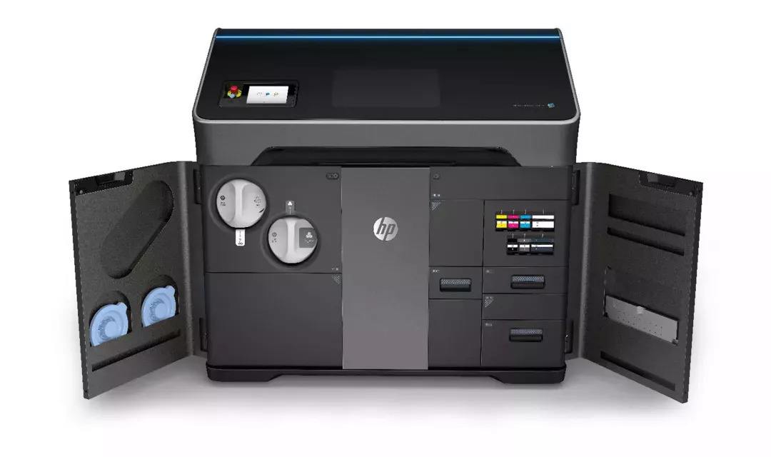 基于惠普?MJF?多射流熔融技術(shù),鋪粉模塊在打印平臺(tái)上鋪設(shè)尼龍粉末材料,熱噴頭模塊噴射助融劑和細(xì)化劑。鋪粉模塊上下移動(dòng)鋪設(shè)一層均勻粉末,熱噴頭模塊左右移動(dòng)噴射兩種試劑,同時(shí)通過兩側(cè)熱源加熱融化打印區(qū)域的材料。MJF 彩色 3D 打印機(jī)配備了 CMYK 四色墨盒,可直接 3D 打印全彩模型。