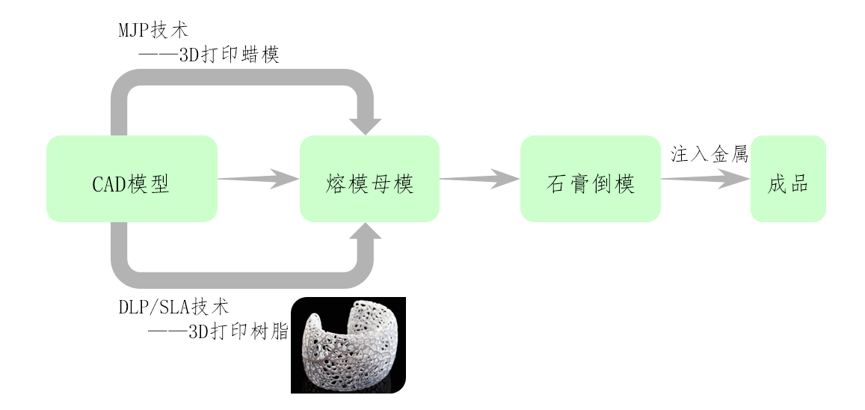蠟型3D打印機(jī)打印蠟?zāi)#s短了工藝鏈,提升了設(shè)計(jì)自由度。推動設(shè)計(jì)往定制化、更復(fù)雜或者獨(dú)特的設(shè)計(jì)、數(shù)字化制造方向發(fā)展。